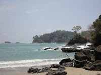 Nous sommes entrés au Costa Rica par la région la plus authentique du pays car les autres secteurs se voient garnis de nombreux touristes notamment américains. Un paysage trés vert, une nette transition avec le Panama. Nous avons sillonné une vallée verte où ont été plantés de nombreux palmiers aux fins de production d'huile de palme. Nous avons quitté Golfito (le 7 avril 2010 à 10 h 00) un petit port de 6 km tout en longueur en bordure de mer. C'est une zone libre de taxes et un commerce important en multiples produits se fait en ce lieu. Nous avons rejoint le village de Manuel San Antonio pour se loger au Coco Beach, un petit hôtel simple. Nous serons, dés demain, dans le parc national à la découverte de la faune et la flore.