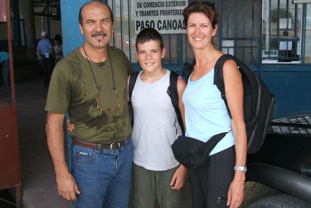 Nous quittons Boquete et laissons le véhicule de location ( yaris ) à la société « Alamo » à l'aéroport de David. Nous rejoignons en taxi jaune (amarillo) la frontière à Pasocanoas ( 40 km ). Formalités douanières au Panama sans difficulté aucune (Taxe : 1 dollar par personne pour quitter le pays ). Nous passons du Panama au Costa Rica à pied ( 200m ). Il fait une chaleur d'enfer en ce lieu ( voir le tee-shirt de Christian sur la photo), une vraie étuve. Passage de la frontière au Costa Rica étayé par le sourire ravissant d'une policière ( enfin ! ). Nous prenons un taxi rouge ( rojo ) pour rejoindre Golfito (40 km), un petit port ( lieu le plus humide du pays) du Costa Rica avec son lot de résidents un peu particulier ( origine Nicaragua pour pas mal ) qui émergent plus particulièrement la nuit vers 22h30 suivant les « bons habitants ». Nous notons la présence de quelques touristes qui viennent visiter le parc national du Corcovado – 54 000 hectares. Il présente la particularité d'être d'une biodiversité la plus importante de la planète. A ce stade du récit, nous adressons un salut au romancier-aventurier Cizia Zÿke qui a séjourné en ce lieu il y a 30 ans ( auteur ouvrage : Oro à lire ). Nous nous installons dans une pension dénommée « Golfito » tenu par « una madre » sympathique. Demain nous réceptionnons notre véhicule de location « un Bego 4x4 » (il faut bien cela pour les pistes qui nous attendent) et partons pour le parc national Manuel Antonio sur la côte pacifique Sud à 1h30 au Sud de Punta Arenas.