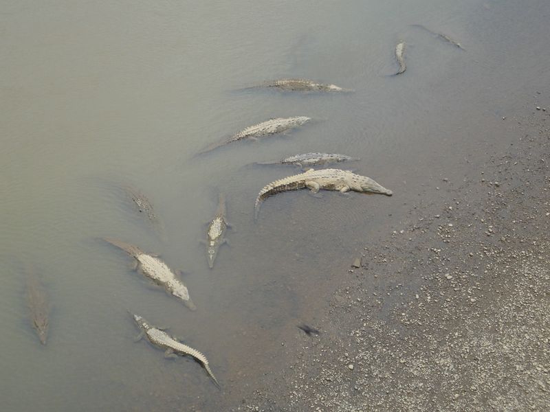 Nous rejoignons le fameux pont de Tarcoles pour retrouver des crocodiles qui vivent dans cette rivière à l'état naturel. Depuis le pont nous découvrons de véritables « bestiaux », pour certains de 5 et 6 mètres de long et 500 kilos « tout mouillés ». Le spectacle est impressionnant et ne donne pas envie de se baigner, même pas de tremper un orteil !