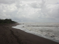 Nous voici sur la route qui nous amène de Quepos-Manuel San Antonio vers Jaco. Nous longeons de nombreuses plages tantôt de sable volcanique tantôt de rochers. Les paysages sont sauvages et les plages souvent dépeuplées (playa Hermosa – belle –) mais nous savons que les tortues de mer nichent en ce lieu. Il règne en cette plage une extrême chaleur qui nous écrase littéralement, les embruns marins n’y font rien. En suivant, nous arrivons au petit village de pêcheurs de Tarcoles et décidons de nous installer en ce lieu pour la nuit au sein de l'hôtel Carara qui jouxte la mer. Nous découvrons une jolie « soda » ( auberge ) au sein de l'agglomération où nous dégustons des ceviches ( poissons crus baignant dans le citron ), camarones aljillo ( crevettes à l'ail ), poisson Mahi-Mahi (daurade). Ici pas de doute c'est de la marchandise bien fraiche ! Un plaisir du palais à petits prix! (le pêcheur-poissonnier est en face du «soda »).