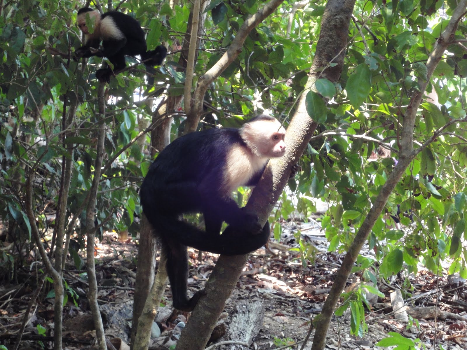 Après un petit déjeuner typiquement local – le gallo pinto - (riz avec haricots noirs – épicé -, œufs brouillés et banane salée le tout agrémenté néanmoins d’un café), nous visitons le parc naturel « Carara ». Nous parcourons des sentiers sauvages au sein d’une végétation très épaisse qui abrite aras et oiseaux divers. Contemplation d’une nature préservée et respectée, d’une faune en toute liberté. A la croisée des chemins, une bande de singes nous observent de prés tout en s’agitant dans les branches. Curiosité et inquiétude se mêlent des deux cotés. Nous préférons nous éloigner.