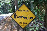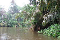 Nous "montons" au cratère du volcan « Poas » malheureusement la visibilité est nulle. Impossible d’accéder au site proprement dit. Il en est de même pour le volcan « Iratzu ». Nous décidons de « filer » sur Tortugueros sur la côte caraïbes à 4h30 de voiture. Après la traversée d’Alajuela et de la capitale San José, la route très sinueuse et montagneuse est exténuante, néanmoins le paysage est beau, d’une extrême verdure (Paraiso, Turrialba). Nous arrivons à Siquirries et surprise, nous devons prendre une piste caillouteuse, défoncée, inondée, longue de 32 km pour atteindre Cano Blanco et ce, au travers de plantations de bananiers. 1h00 de parcours à «la parkinson», le bego 4x4 vibre de partout, bonjour les vertèbres, c’est le bouquet final ! Chantal finit en conduisant debout ! Nous atteignons le petit port d’embarquement au bout du monde ! Ce soir, nous avons notre dose, nous ne traverserons pas. Nous décidons de loger dans un bungalow prés de l’embarcadère ! La nuit tombe à 17 h45, des trombes d’eau aussi ! Demain nous devons négocier la traversée avec les passeurs et ce n’est pas une mince affaire ! Ici c’est le no man’s land !