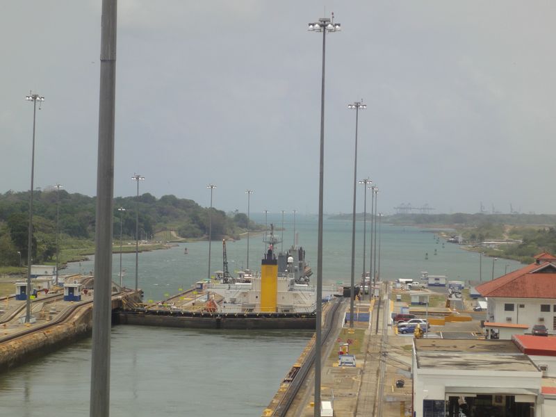 Nous arrivons néanmoins tant bien que mal aux écluses du canal de Panama au lac Gatun. Nous y assistons au passage d'un porte-containers gigantesque baptisé « le château d'If » battant pavillon chypriote. Le spectacle vaut le détour. Le canal du midi peut se rhabiller !!! Ferdinand a fait la pige à Pierre-Paul Riquet !