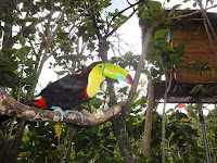 Au sein de la pension Topas, une volière avec un superbe Toucan dont nous vous gratifions d'une photo. Un bel animal curieux qui parade en nous voyant.
