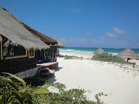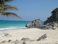 Nous voici à Tulum, le Saint-Tropez du Mexique et ce, pour quelques jours. Nous séjournons dans une "cabanas" - bungalow - les pieds quasiment dans l'eau, nous sommes bercés par le bruit des vagues. Superbe mer bleue au bord d'une plage au sable extrêmement fin, du vrai talc. On relache !!!